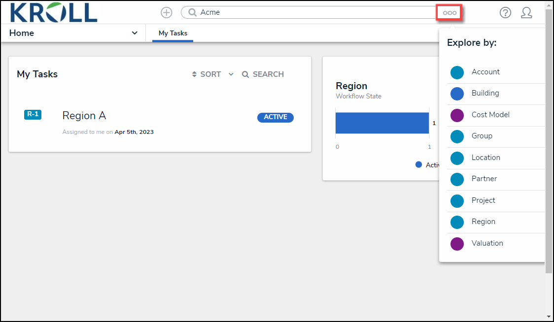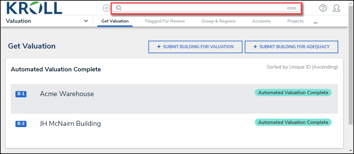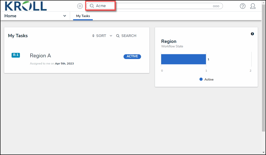 The Platform search function appears at the top of every screen within the Kroll Managed Compliance Software. For this illustration, we are going to start from the Home screen.