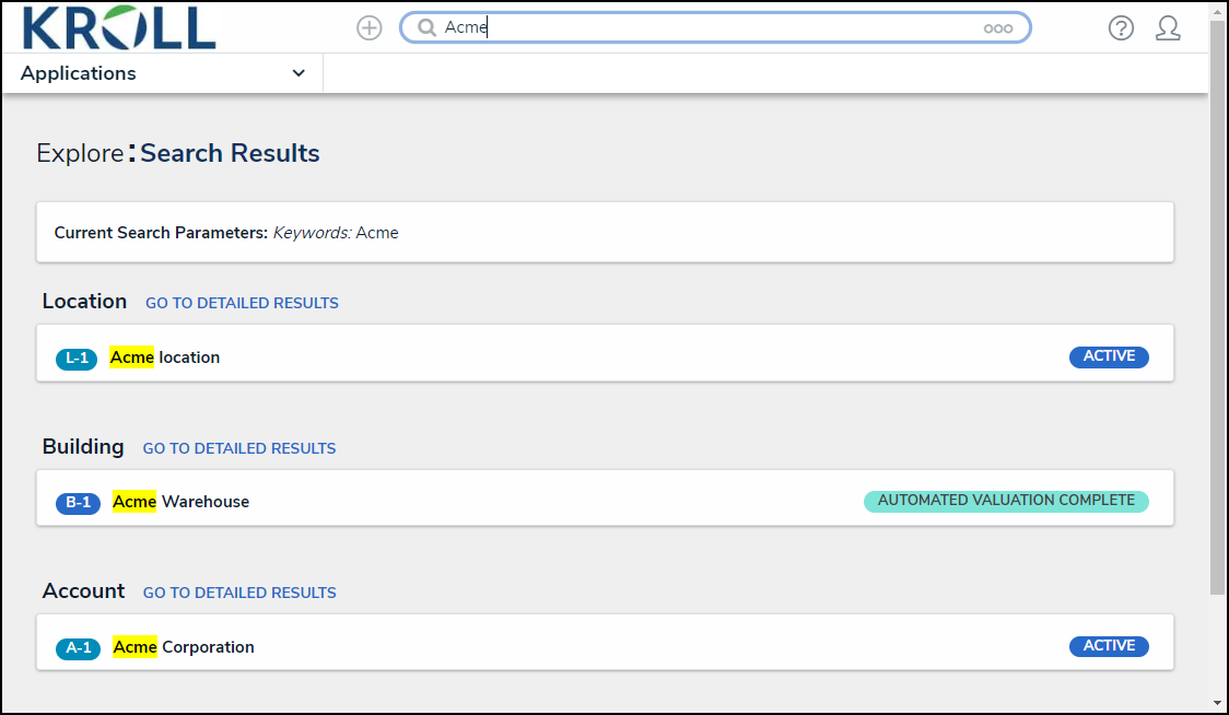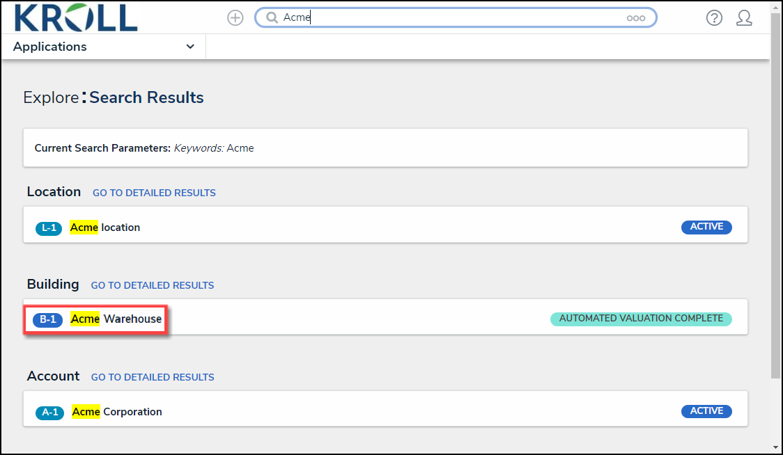 When searching for an Object within the Kroll Managed Compliance Software, the Object refers to a record created in your Org (e.g., B-1 Test Building), and the Object Type is the data category (e.g., Building).